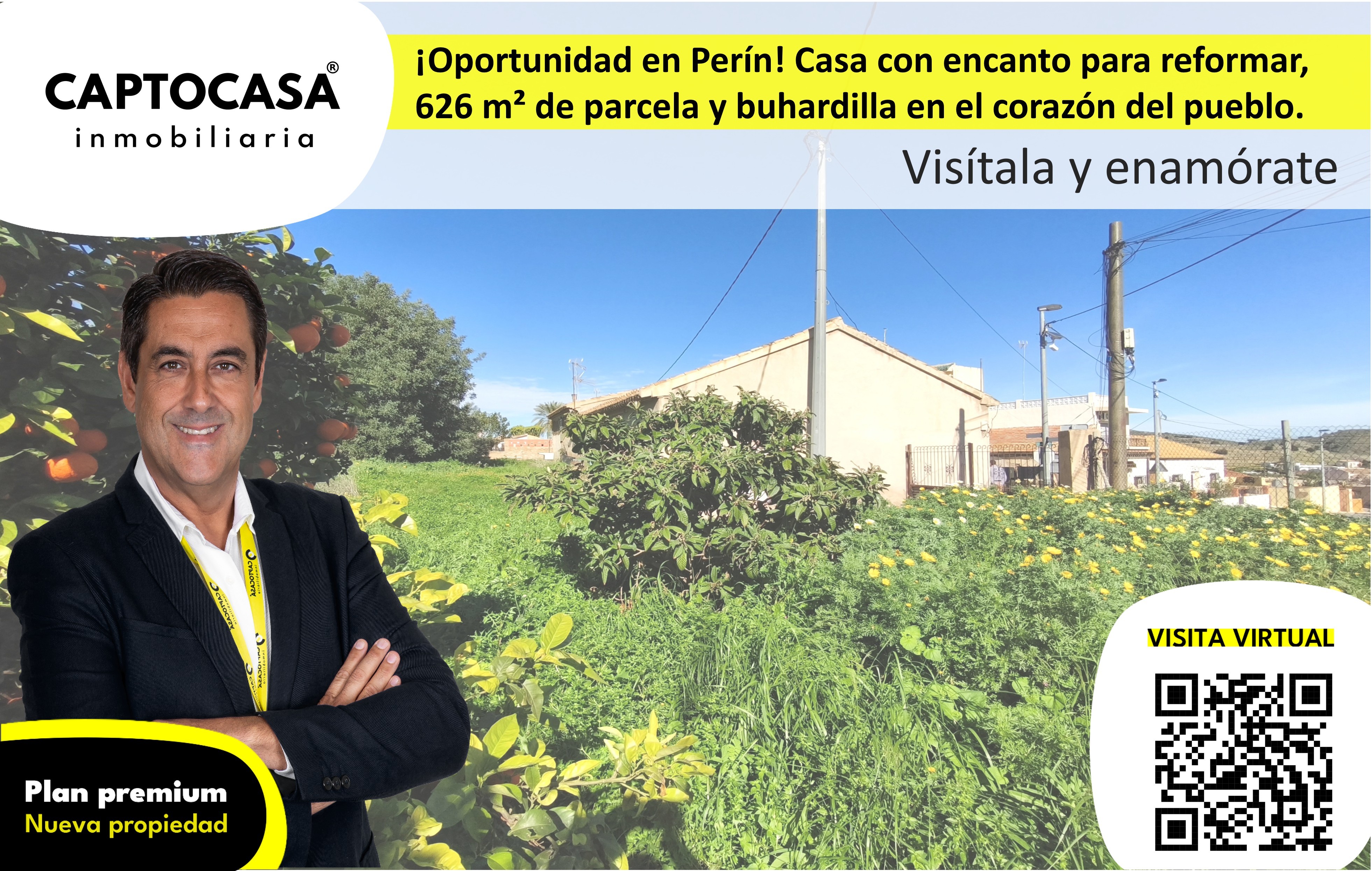 ¿Buscas un refugio donde diseñar la casa de tus sueños? Te presentamos esta propiedad con alma y un potencial ilimitado en la Calle Mayor de Perín, uno de los rincones más auténticos y demandados del Campo de Cartagena. Esta vivienda es el lienzo en blanco perfecto para quienes buscan combinar la estructura de una casa tradicional con el confort moderno. ESPACIO Y DISTRIBUCIÓN: • Vivienda Principal (110 m²): Actualmente distribuida en salón, cocina, 3 dormitorios y un baño. La planta baja ofrece la posibilidad de crear espacios abiertos y luminosos gracias a su generosa superficie. • Buhardilla (20 m²): Un espacio extra con mucho carácter, ideal para convertirlo en un estudio de pintura, despacho con vistas o un cuarto dormitorio con encanto. • Exterior y Patio: Disfruta de un patio privado de 22 m² (ideal para desayunos al aire libre) y una espectacular parcela de 626 m². Un terreno llano y aprovechable donde podrás tener tu propio huerto, zona de piscina o un jardín mediterráneo de ensueño. EL POTENCIAL DE LA REFORMA: La vivienda requiere una reforma integral, lo que te permite redistribuir los espacios a tu gusto, recuperar materiales tradicionales o apostar por un diseño contemporáneo en un entorno rural protegido. UBICACIÓN PRIVILEGIADA: Situada en la misma Calle Mayor, estarás a un paso de la vida social del pueblo, rodeado de naturaleza, rutas de senderismo y a menos de 15 minutos de las playas de Mazarrón y del centro de Cartagena. Si tienes visión de futuro y buscas un proyecto especial en un entorno único, esta casa te está esperando. La oferta está sujeta a cambios de precio o retirada del mercado sin previo aviso por ser nosotros simplemente intermediarios y no propietarios. Este anuncio en su conjunto, incluyendo textos, fotos, imágenes o cualquier otro contenido del mismo, no es vinculante dado que la información es ofrecida por terceros y puede contener errores. Se muestra a título informativo y no contractual. El mobiliario y los vehículos que puedan aparecer en las fotografías aquí publicadas no se encuentra incluido en el precio de venta, aun así y llegado el momento de adquisición se podrá acordar entre las partes si se quedara dentro del inmueble algún mobiliario y así se verá reflejado en el contrato de compraventa entre las partes. El precio no incluye lo siguiente: honorarios de gestión de la agencia inmobiliaria, ITP y otros gastos de compraventa (Notaría, Gestoría y Registro). Si nos lo solicitan, estaremos encantados de hacerles un presupuesto completo adaptado a sus características personales. El propietario de este inmueble ha confiado en exclusiva los servicios de CAPTOCASA INMOBILIARIA para comercializar la venta de esta propiedad. De esta manera quiere asegurarse que la gestión se realice de la manera más profesional, rápida y eficaz. Si usted está interesado en esta propiedad, le garantizamos una gestión íntegra desde el primer momento. ¡Contacte con nosotros! Estará en manos de un gran equipo profesional con más de 20 años de experiencia en el sector inmobiliario.